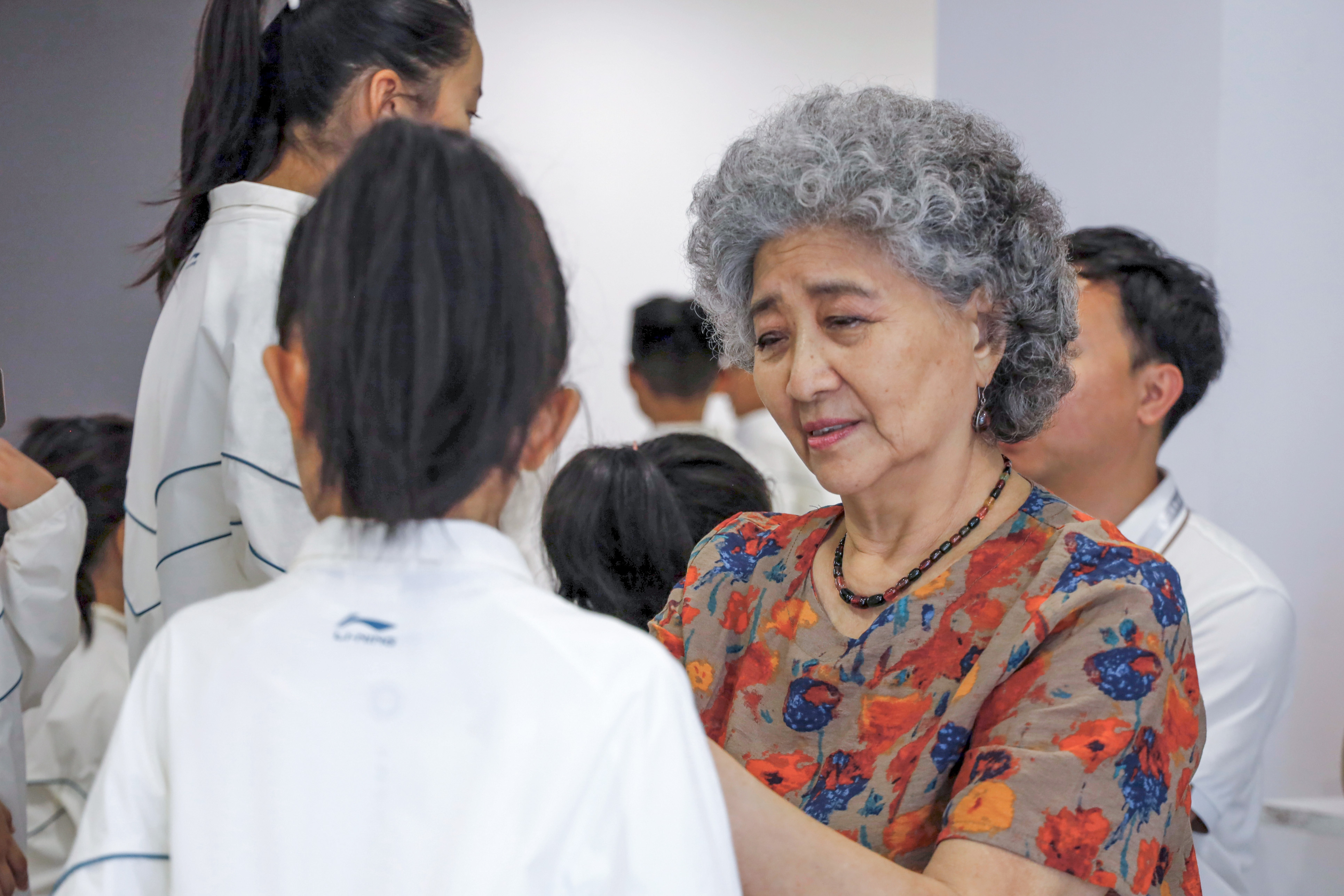(赛前,中国交响乐团女中音歌唱家、国家一级演员、全国脱贫攻坚先进个人李克为孩子们整理服装)