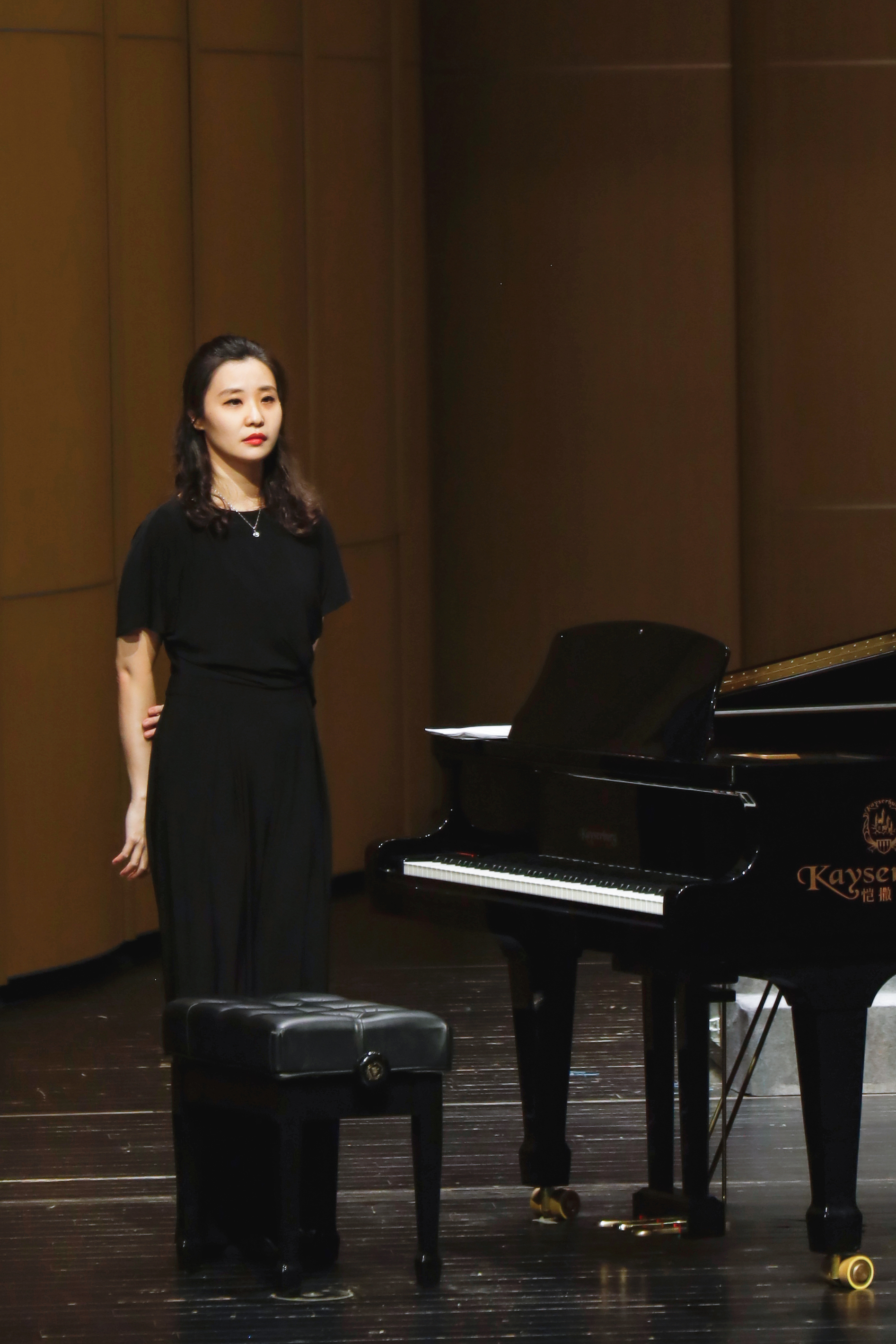 (中国交响乐团青年钢琴演奏家李舒曼担任静乐县童声合唱团钢琴伴奏,合唱结束后,李舒曼聆听评委嘉宾点评)