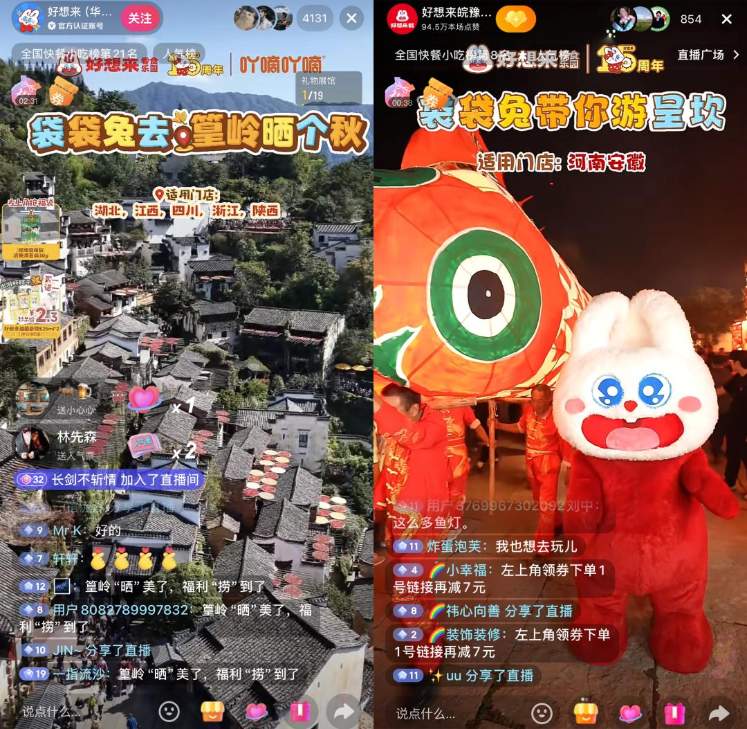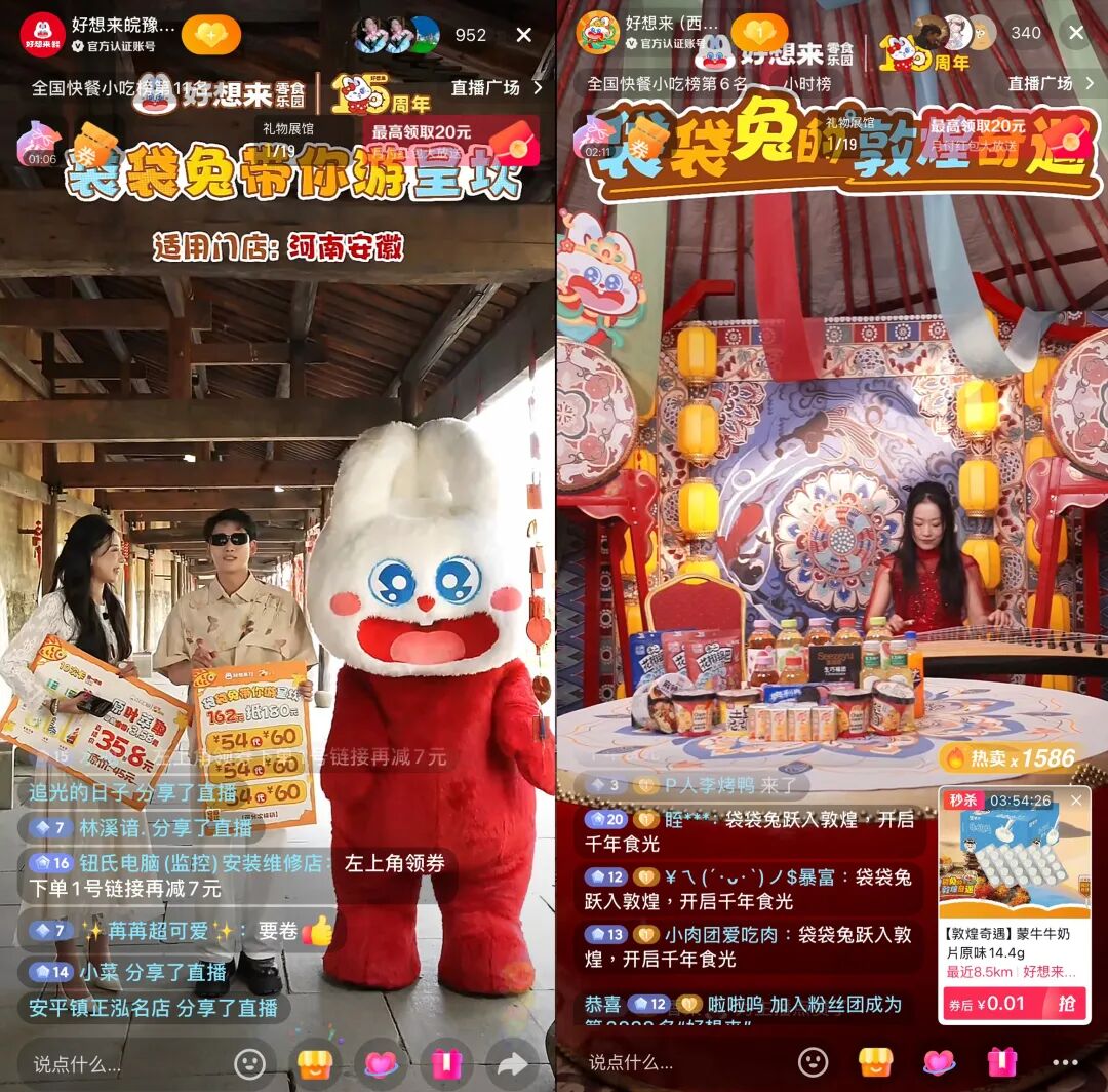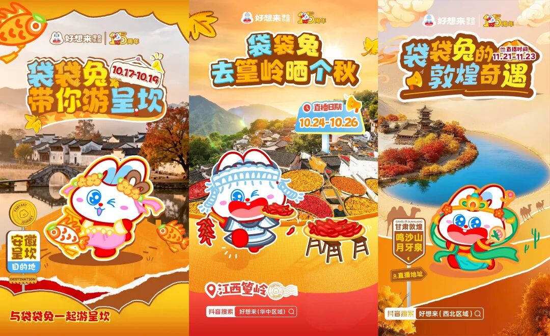 而近期,国民级零食零售连锁品牌好想来给出的答案,是一场覆盖全国六大文旅地的“袋袋兔的奇妙秋游”直播活动。