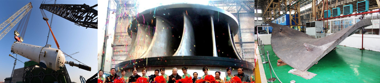 图10左:核电站压力容器吊装(来源网络);图10中:三峡水电站某水轮机转轮出厂仪式(来源网络);图10右:该水轮机转轮叶片铸造完成后的形态(来源网络)