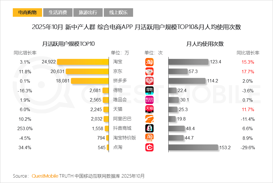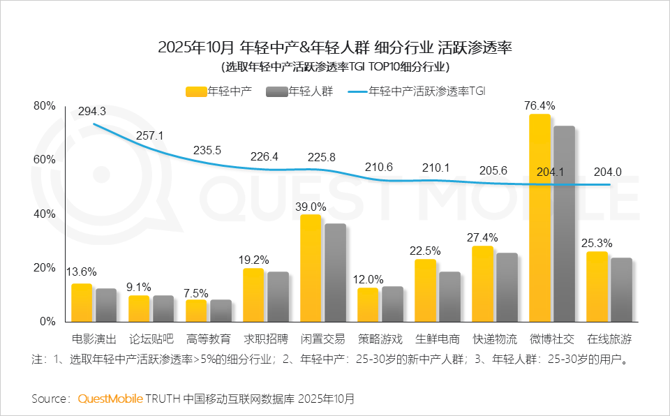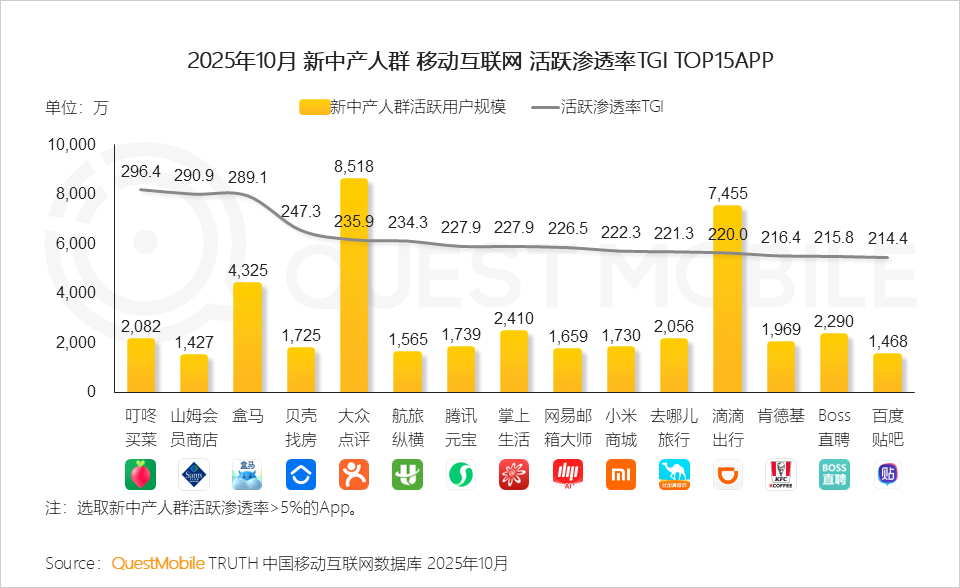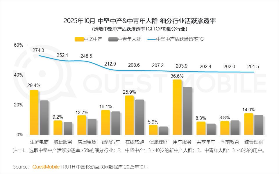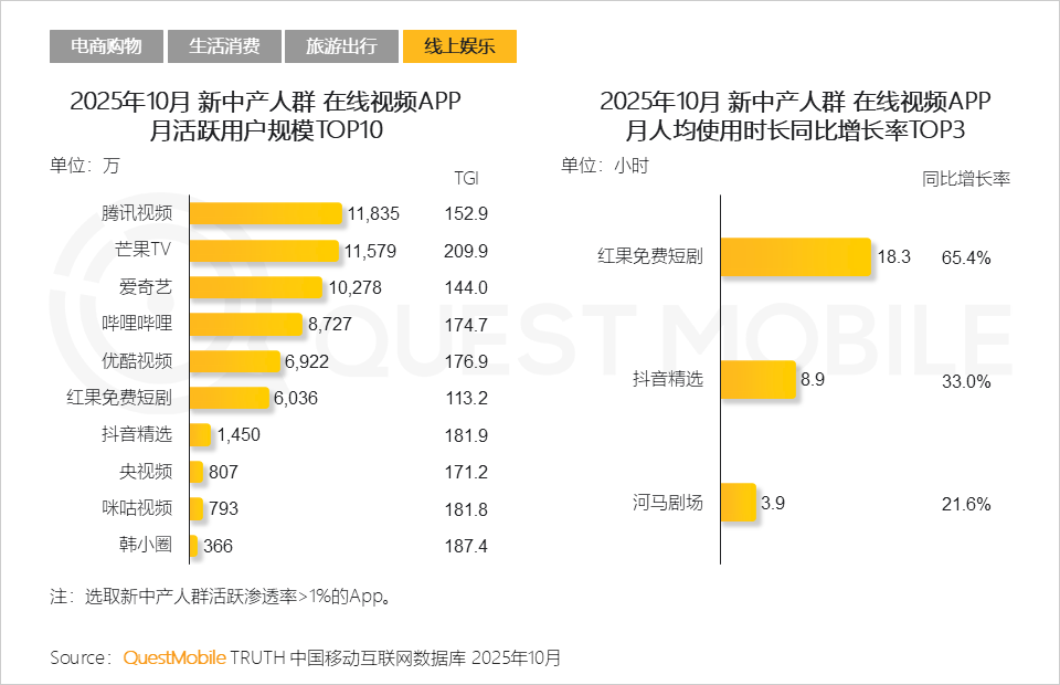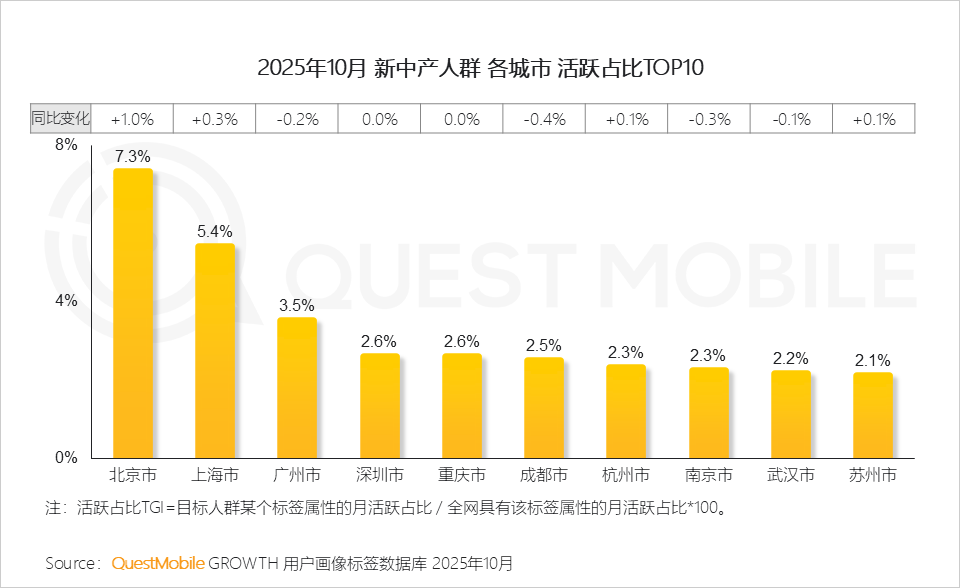 QuestMobile数据显示,2025年10月新中产人群用户规模达到2.78亿,同比净增长317.4万,全网占比微降0.2个百分点。