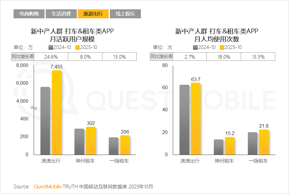 10、打车、租车平台中新中产用户规模与使用频次正同步攀升