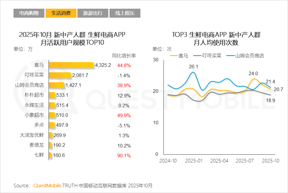 6、品质生鲜与会员店APP增长强劲,展现出新中产对优质体验的追求,并在年前、暑期等节点呈现“囤货式”消费特征
