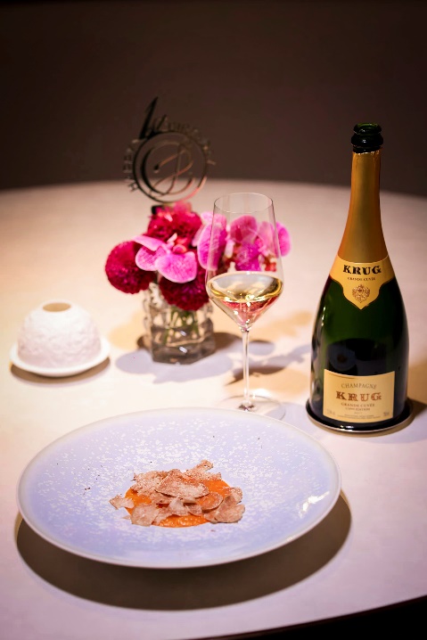 这种对自然与风味的敬意,也延伸至Krug in the Kitchen项目中。Krug in the Kitchen邀请全球Krug Ambassade主厨灵感共创,在创意、技艺与实验精神的交融中,共同探索香槟与美馔搭配的崭新境界。今年聚焦的食材——胡萝卜,外表质朴却蕴藏丰富表现力,正是诠释烹调多样性的理想载体。在本次晚宴中,主厨Johnny Pham以胡萝卜为起点,通过解构与重组多元食材风味,回应库克香槟对风土个性与创新精神的不懈追求。