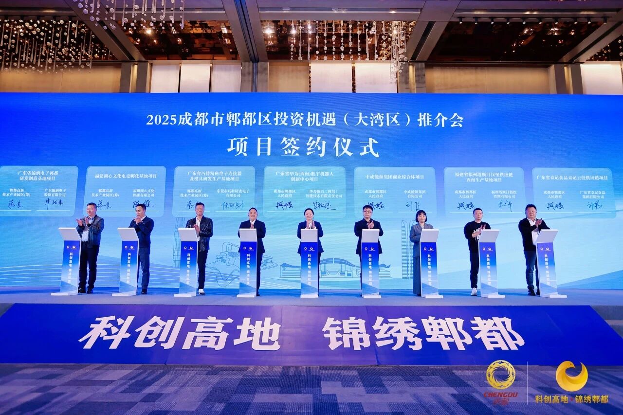 12月2日,广东深圳,西南腹地与沿海前沿的产业对话在此升温——2025成都市郫都区投资机遇(大湾区)推介会成功举办,粤港澳大湾区的企业家代表、电子科技大学深圳校友会与郫都招商代表团齐聚一堂,以产业为桥、以合作为约,共绘协同发展蓝图。现场7个重点项目成功签约,总投资额达36.8亿元,为郫都与大湾区的协同发展注入强劲动能,更见证着这座西部新城“朋友圈”的持续扩容。