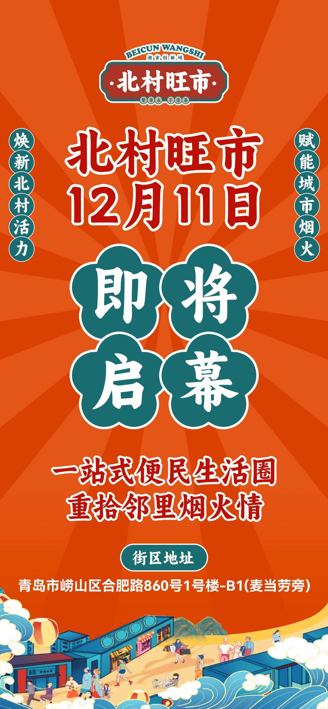随着北村旺市开街临近,一幅便捷与温暖交织的生活图景正徐徐铺开,为北村乃至崂山居民的生活注入崭新的烟火气息。诚挚欢迎广大市民在开街之际来到北村旺市,逛超市、品美食,共同见证这一温馨便捷的社区新空间的诞生!