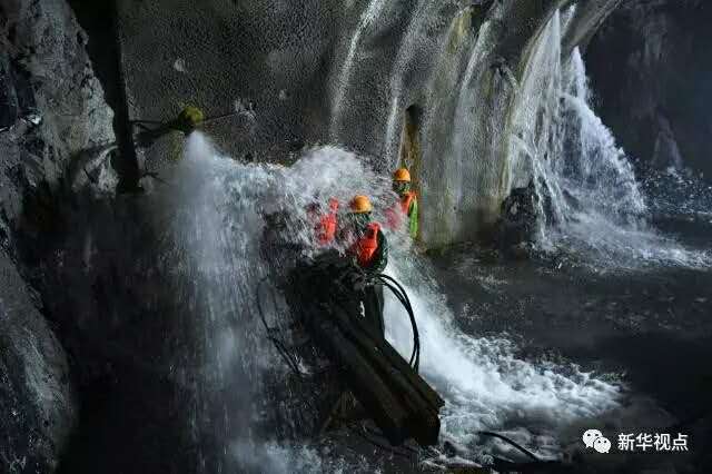 (图为施工场景,隧道内涌水不断)