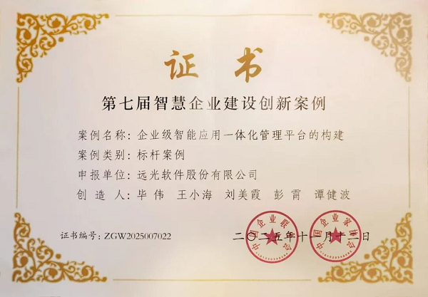 此次获评“智慧企业建设创新案例”,是对远光软件在企业数智化领域创新与实践能力的肯定。未来,远光软件将紧跟AI与大模型技术发展趋势,持续深化产品技术能力建设,助力更多企业加速迈向数智化运营新阶段。