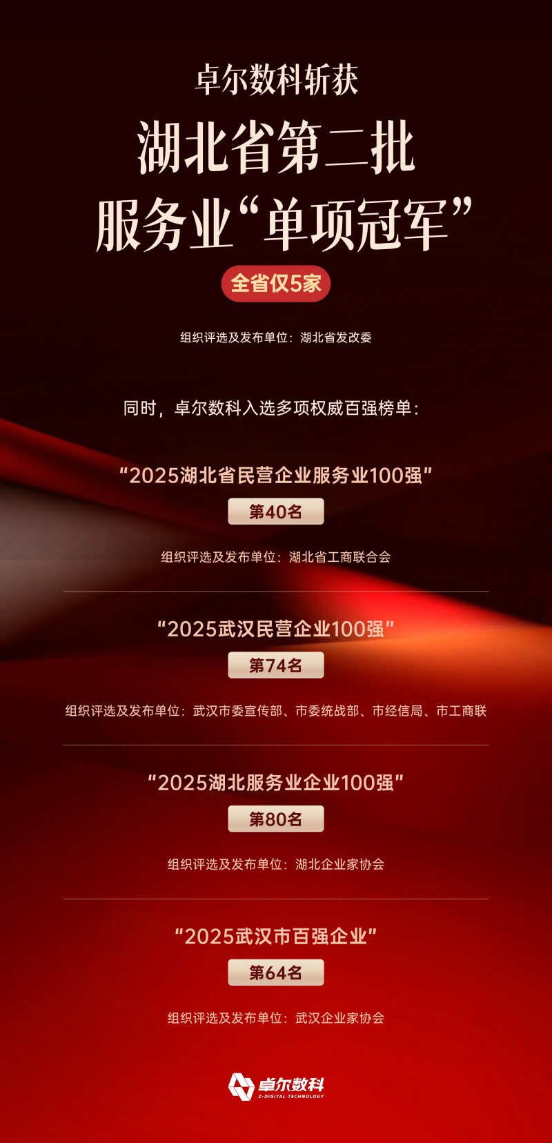 2025年9月:入选“2025湖北省民营企业服务业100强”榜单(第40名)