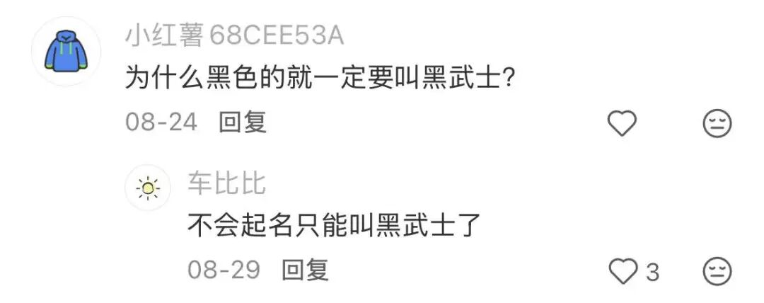 “黑武士”曾代表稀缺和奢华,如今却因为泛用而变得失去意义。这个词不仅在颜色层面上失去了原本的“纯黑”指向,在产品层面上也不再意味着“高端”“限量”或“特殊定制”。现在只要听到“黑武士”,消费者唯一能确定的只是:这是一台大体黑色的车。
