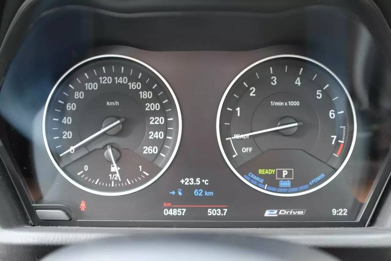 静态感受方面,宝马X1 xDrive25Le在外形及内饰设计上都和宝马X1的传统动力版本几乎一样,只是上多了一些专属标识,比如外形方面拥有蓝色镶边的进气格栅和轮毂盖、i标志、eDrive标识等等;车内的话,仪表盘比传统动力车型多了两块小液晶屏,左边是燃油容量,右边展示能量回收。此外换挡杆区域多了eDRIVE按键,而中控显示屏也多了更多的信息展示,仅此而已。空间方面,插电式混合动力版本后排的地坑浅了许多,下面是被电池组的占用,后备箱隐藏格也被占用了一块,但完全可以接受。