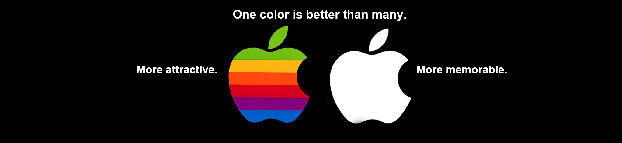 早期的苹果logo颜色看起来很漂亮,色彩斑斓,但漂亮不是我们的目标,我们的目的是要提高可辨识度。白色就非常有辨识度,比如白色的耳机。