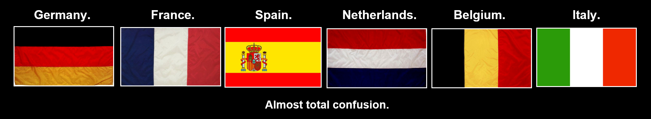 很多国家的国旗用了多种颜色,大家很容易搞混,比如这些国家的国旗,荷兰、比利时、意大利,但是给我们的印象都不深。