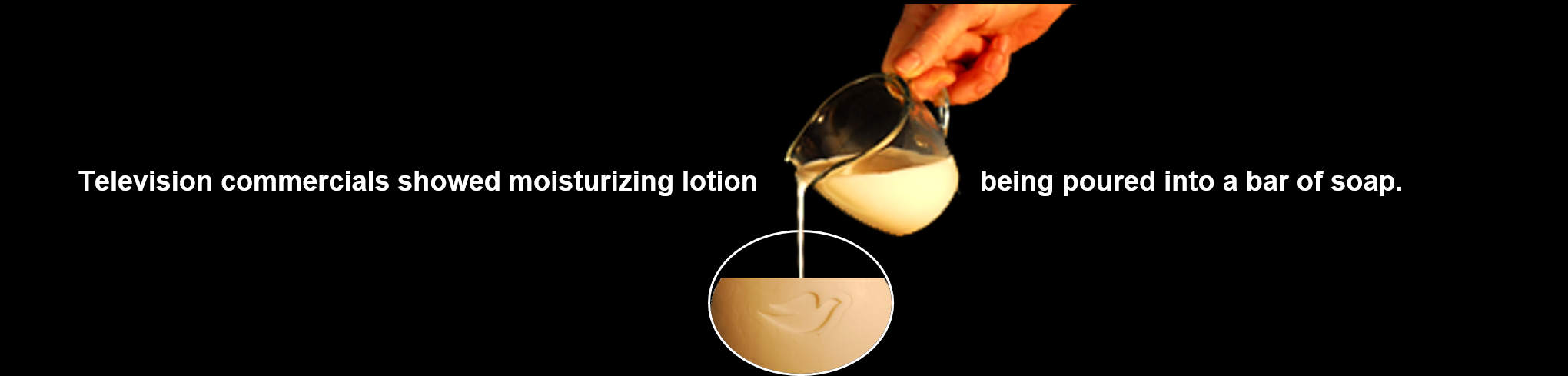 多芬香皂含有四分之一的乳液。怎样把这个定位植入到消费者心智中呢?它做了一个广告,把四分之一乳液导到香皂当中。尽管这并不是香皂实际的制造方式,但是这一动态将定位成功地传达到了消费者的心智中,多芬成为了香皂市场的第一品牌。