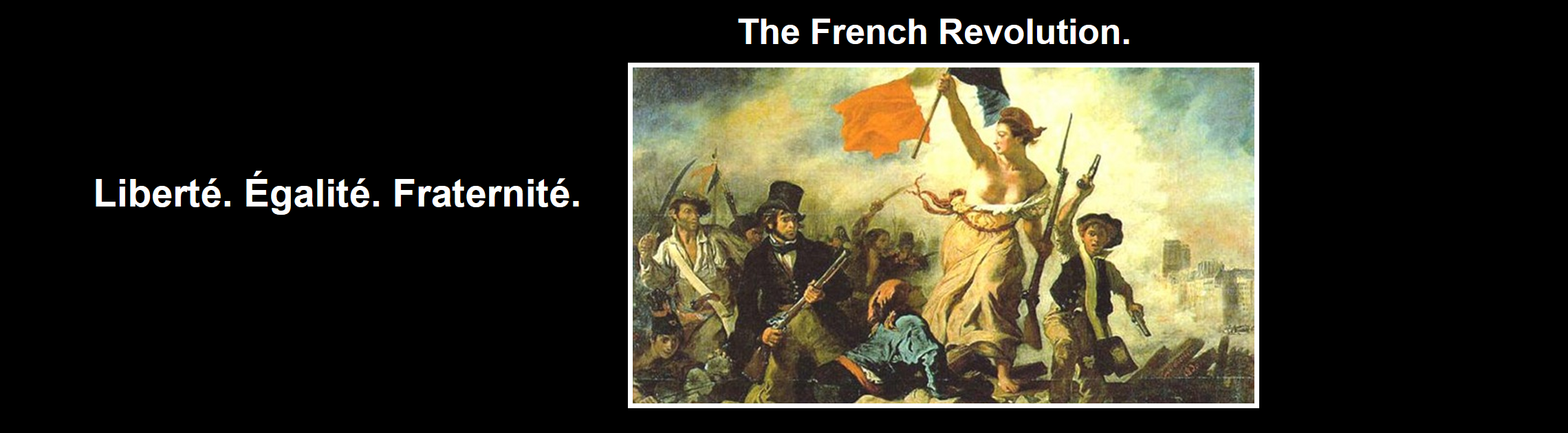 我们看法国大革命的口号,能号召大家,知道为什么去革命,为什么去竞争。自由、平等、博爱,这就是法国大革命的口号。