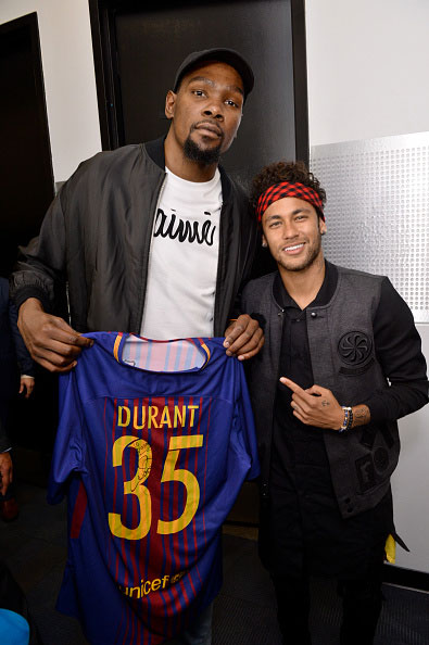 在今天进行的NBA总决赛第2场比赛中,坐镇主场的勇士队132-113再胜骑士队取得了大比分2-0的领先。勇士核心杜兰特延续了第一场的强势表现,交出了33分13篮板6助攻5盖帽3抢断的豪华成绩单,赛后他也迎来了巴西足球巨星内马尔的追捧。