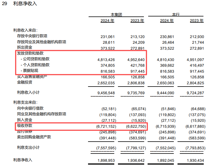 从存款业务来看,截至2024年末,吸收存款余额2967.31亿元,其中个人定期存款余额就达到1845.22亿元,占到62.18%。过去几年居民储蓄意愿增强,存款定期化趋势明显,虽然可以推动银行存款规模增长,但在银行各类存款中,个人定期存款成本相对较高,规模快速增长、占比较高的话,会给银行带来一定成本压力。