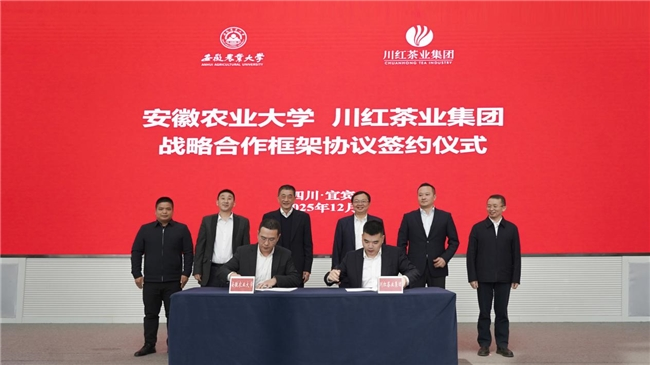 五粮液集团(股份)公司党委书记、董事长曾从钦,五粮液集团公司党委副书记、副董事长、总经理邹涛,安徽农业大学茶树种质创新与资源利用全国重点实验室主任宛晓春,安徽农业大学茶业学院党委书记姜家生出席仪式并见证签约。川红茶业集团党总支副书记、总经理王新宇,安徽农业大学食品与营养学院副院长、茶树种质创新与资源利用全国重点实验室教授王一君代表双方签约,合作将聚焦技术创新、品牌赋能、文化传承与人才培养四大核心,共同挂牌建设“红茶产业科技协同创新中心”与“宛晓春专家工作站”,推动红茶产业高质量发展。