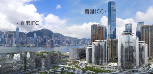(香港ifc、香港icc构成的「维港门廊」及即将落成的西九龙高铁站项目igc,图源新鸿基地产官网)