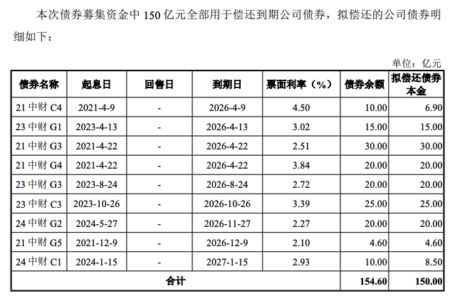 上交所公司债券项目信息平台显示,中国中金财富证券有限公司200亿元小公募债项目状态更新为“已受理”,受理日期为2025年12月5日。募集说明书申报稿显示,本次债券的募集资金将在扣除发行费用后,其中150亿元全部用于偿还到期公司债券本金,剩余部分将用于补充流动资金。