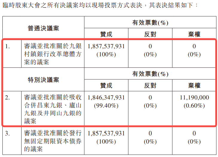 除上述两家经监管批复的村镇银行之外,尚有井冈山九银村镇银行即将被重组,具体何时实现吸收合并,仍有待进一步披露。