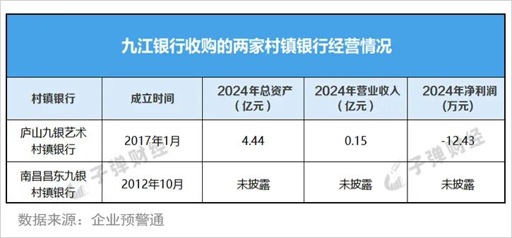 11月初,江西金融监管局发布的批复文件显示,九江银行已获得监管许可,收购2家村镇银行(庐山九银艺术村镇银行与南昌昌东九银村镇银行)并设立分支机构。