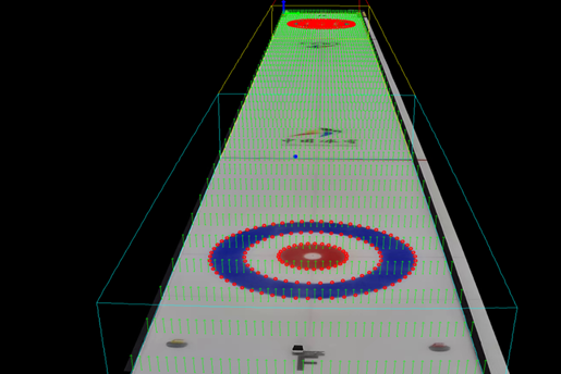以被誉为“冰上围棋”的冰壶运动为例,当传统冰雪智慧与前沿智能技术相遇,知行智跃的冰壶AI战术预测系统,能够使这项战术博弈复杂的冰上竞技运动,以更加直观、专业的方式呈现在观众眼前,该系统采用深度强化学习模型,结合冰壶比赛规则和冰面物理环境仿真进行推演,分析在当前局势下制胜的最佳策略,预测高水平打法的投壶方向、力度,并模拟出滑行轨迹和碰撞情况。
