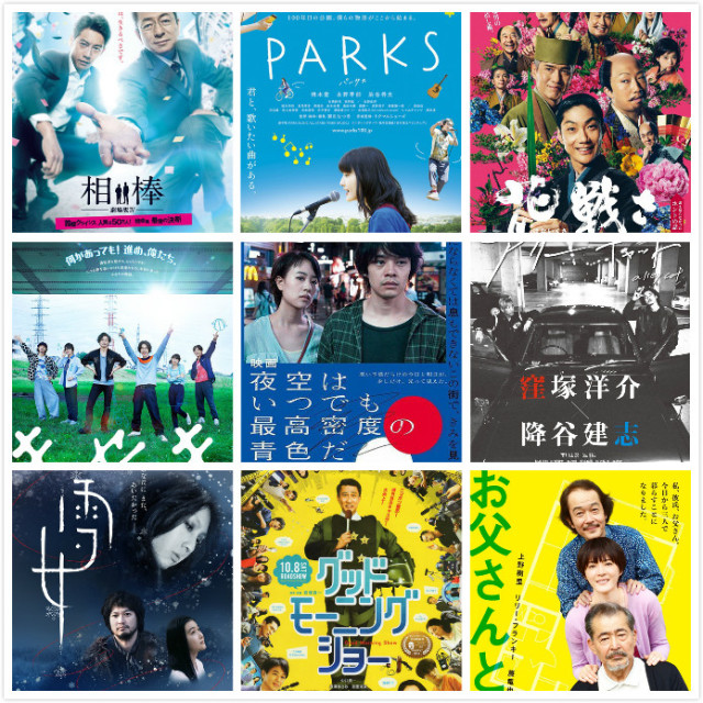 《夜空总有最大密度的蓝色》《人生密密缝》《奇迹,那天如此重要》《海边的生与死》《深夜食堂2》《家族之苦2》《比海更深》《公园》《父亲与伊藤先生》《第二个夏天,不再遇见的你》《恶魔蛙男》《流浪猫》《疾风回旋曲》《花战》《早安秀》《相棒剧场版4》《雪女》