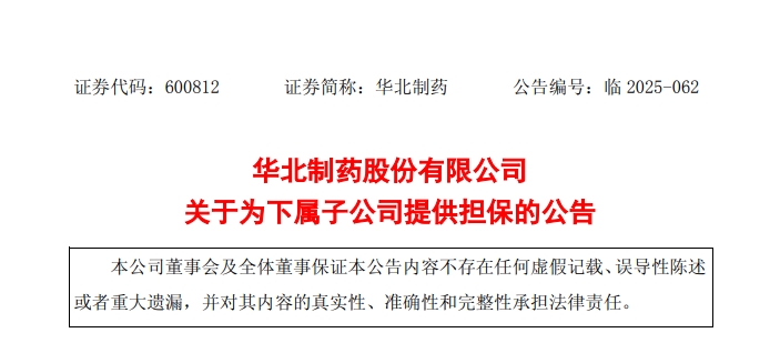 近日,华北制药股份有限公司(证券代码:600812,以下简称“华北制药”)公布了关于为下属子公司提供担保的公告。