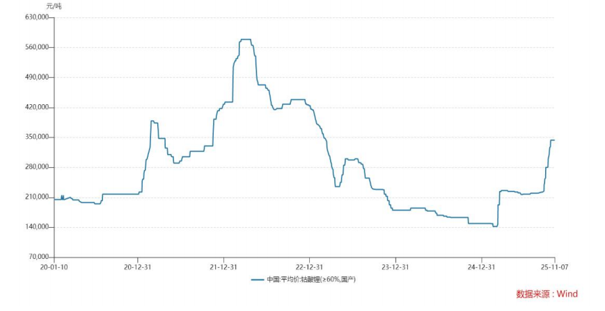 美特新材主营钴酸锂、三元正极材料及钠电正极材料,2025年前三季度营收6.4亿元,已超过2024年全年的6.29亿元;净利润3560.96万元,接近2024年全年359.74万元的10倍。不过,界面新闻记者发现,美特新材2024年扣非净利润为-23.9万元,处于实质亏损状态。究其原因,公司2025年业绩爆发主要依赖钴酸锂价格反弹,该产品价格从2025年初的14万元/吨飙升至11月的35万元/吨。这种周期性涨价带来的盈利增长或具不可持续性,美特新材明年的业绩是否还能保持持续增长态势要打上个问号。