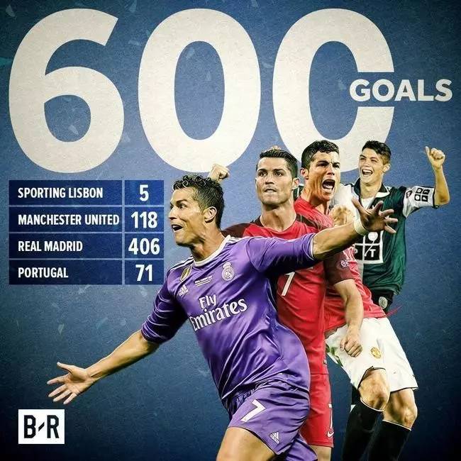 ▼C罗进球总数达600球