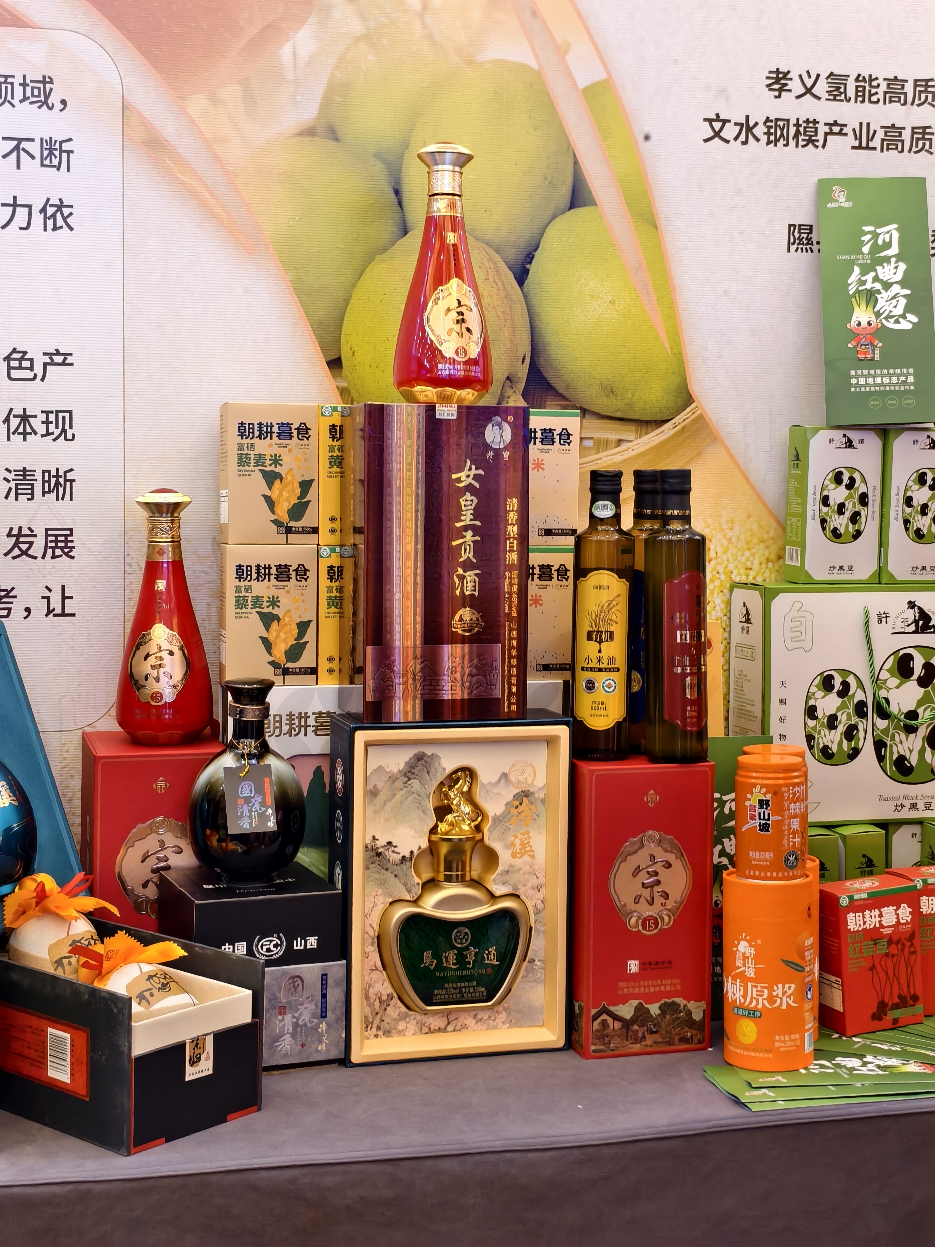 立足消费需求导向,文水酒企的创新亮点频现。“我们紧扣消费者心理,设计了这款‘马运亨通’白酒。瓶形参照元宝造型,寓意招财进宝;明年是马年,瓶盖特意做成骏马造型,象征马到功成。”山西杏花汾溪酒厂有限公司总经理胡曜鹏细致解读着产品的设计巧思。另一边,山西杏花村酒业集团吕梁酒厂副董事长陈国庆手持女皇酒向嘉宾展示:“这款酒源自文水女皇武则天的历史文化,设计风格端庄典雅。”