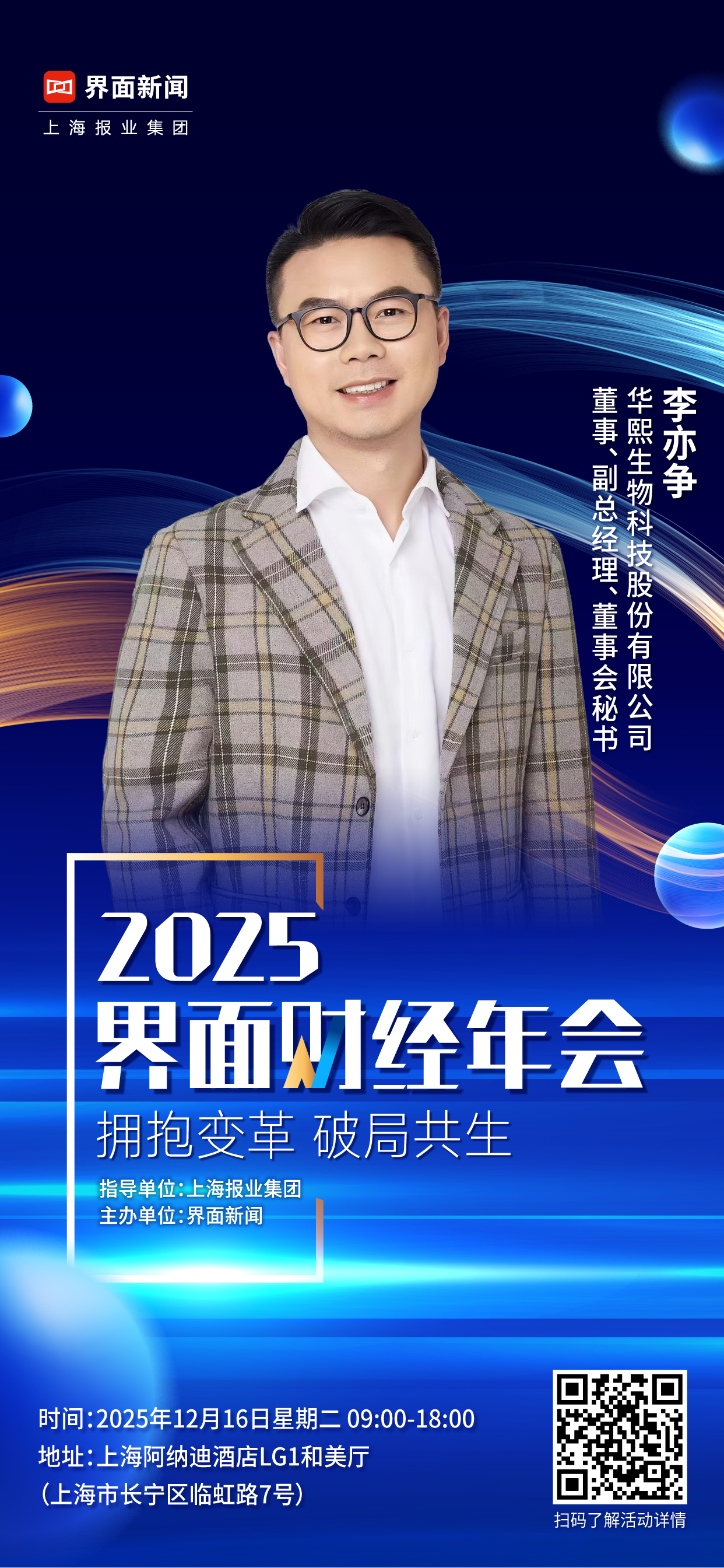 华熙生物科技股份有限公司董事、副总经理、董事会秘书李亦争确认出席【2025界面财经年会】。