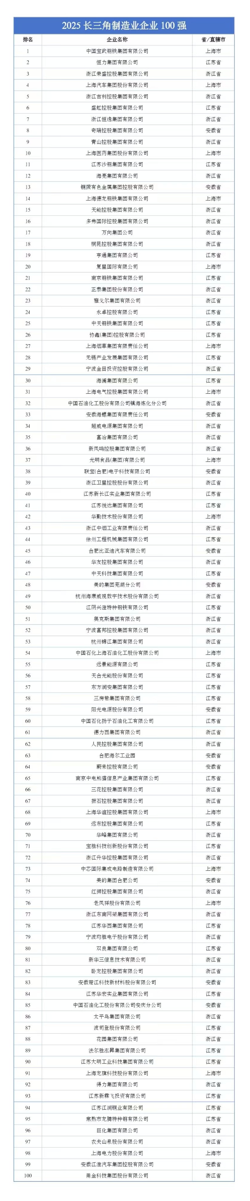 12月5日,长三角三省一市企联在中国金融信息中心联合召开2025长三角百强企业新闻发布会。