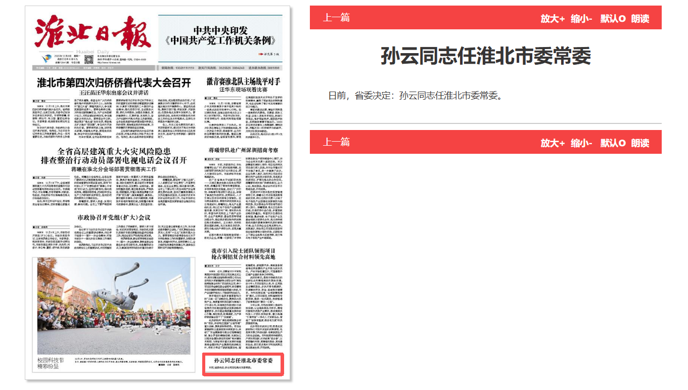 据淮北日报12月8日消息,日前,安徽省委决定:孙云同志任淮北市委常委。