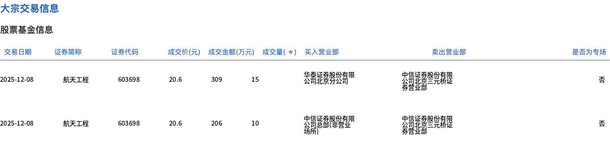 航天工程今日大宗交易折价成交55万股,成交额1133万元