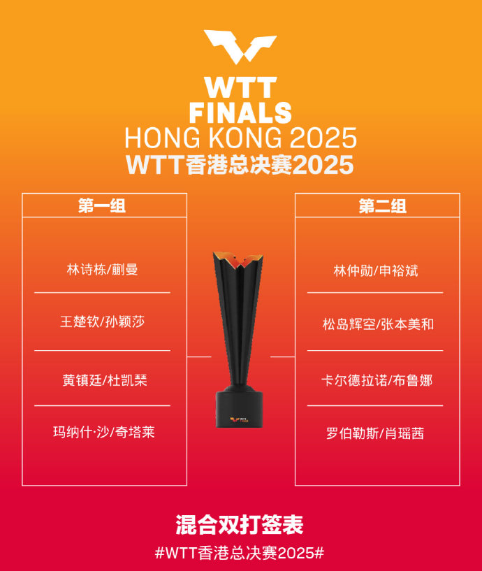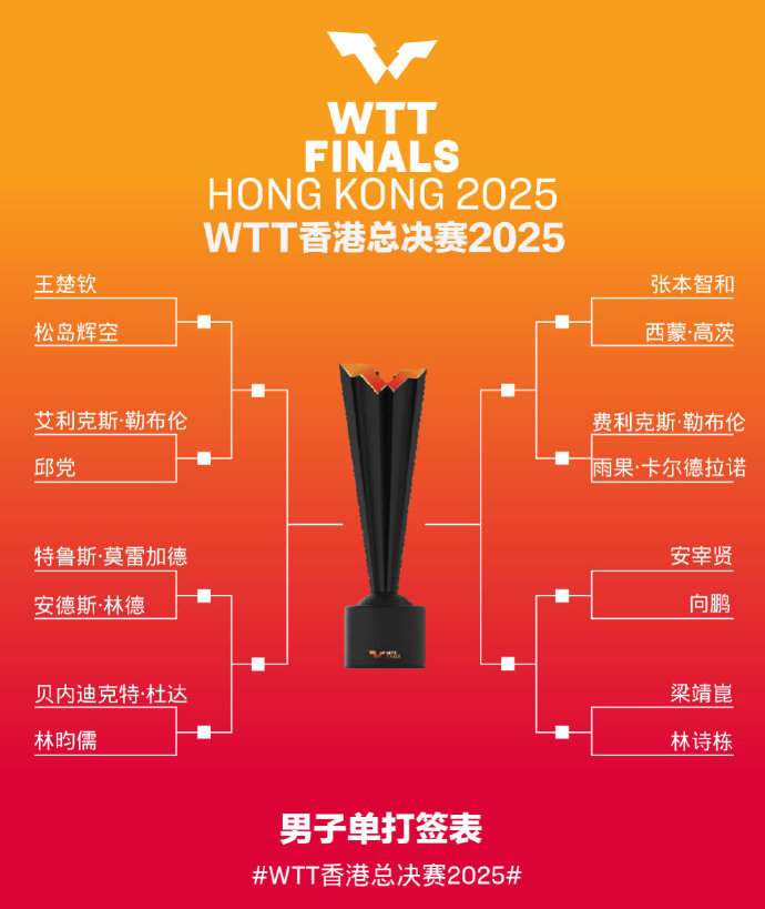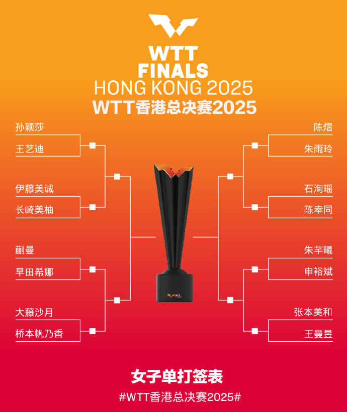 国乒11人将出战,WTT香港总决赛签表公布