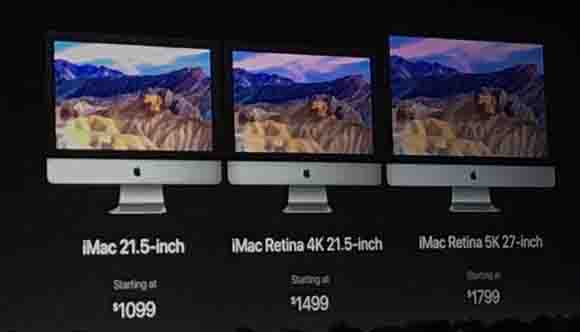 苹果昨晚还更新了全线的iMac电脑产品。升级了屏幕、处理器以及存储方案,并且为21.5英寸版本的iMac也加入了Retina 4K显示屏。
