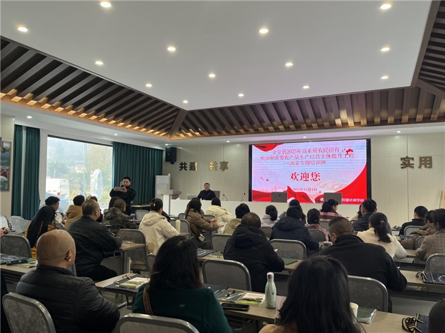 为深入贯彻落实中央和省市关于乡村振兴战略的决策部署,深入实施乡村振兴战略,扎实推进新时代更高水平“天府粮仓”金堂片区建设,2025年12月1日起,金堂县2025年高素质农民培育--粮油和重要农产品生产经营主体提升工程在金堂县转龙镇“乡村振兴学院”和成都金堂爪龙溪餐饮有限公司正式启动。