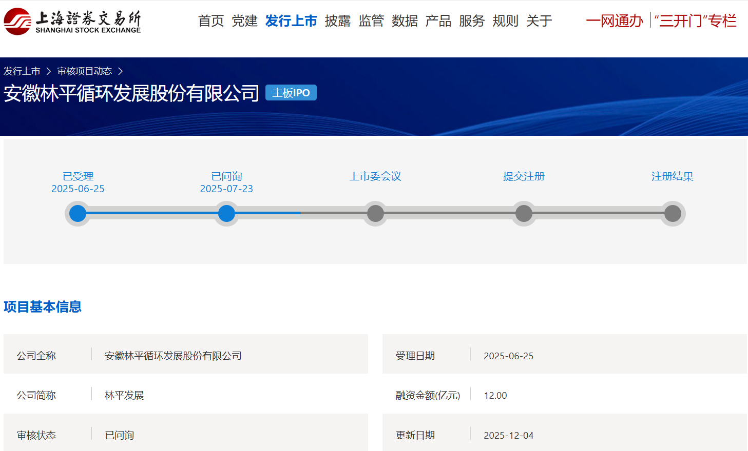 近期,安徽林平循环发展股份有限公司(下文简称“林平发展”)在上交所主板的上市进程迎来关键进展,将于12月11日上会迎考。