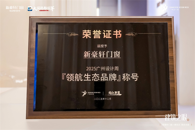 12月6日,新豪轩门窗再添殊荣,获泛家居网红联盟授予“2025 广州设计周领航生态品牌”荣誉称号,彰显品牌在行业生态中的引领地位。