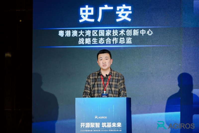 粤港澳大湾区国家技术创新中心战略生态合作总监史广安分享了《国创智能机器人操作系统》,史总监说行业OS的竞争不是某一项能力的竞争,而是“从芯片到场景”的系统能力竞赛。自主操作系统的使命,是让行业不再被复杂软硬件牵着走,而是能真正构建自己的数字底座。