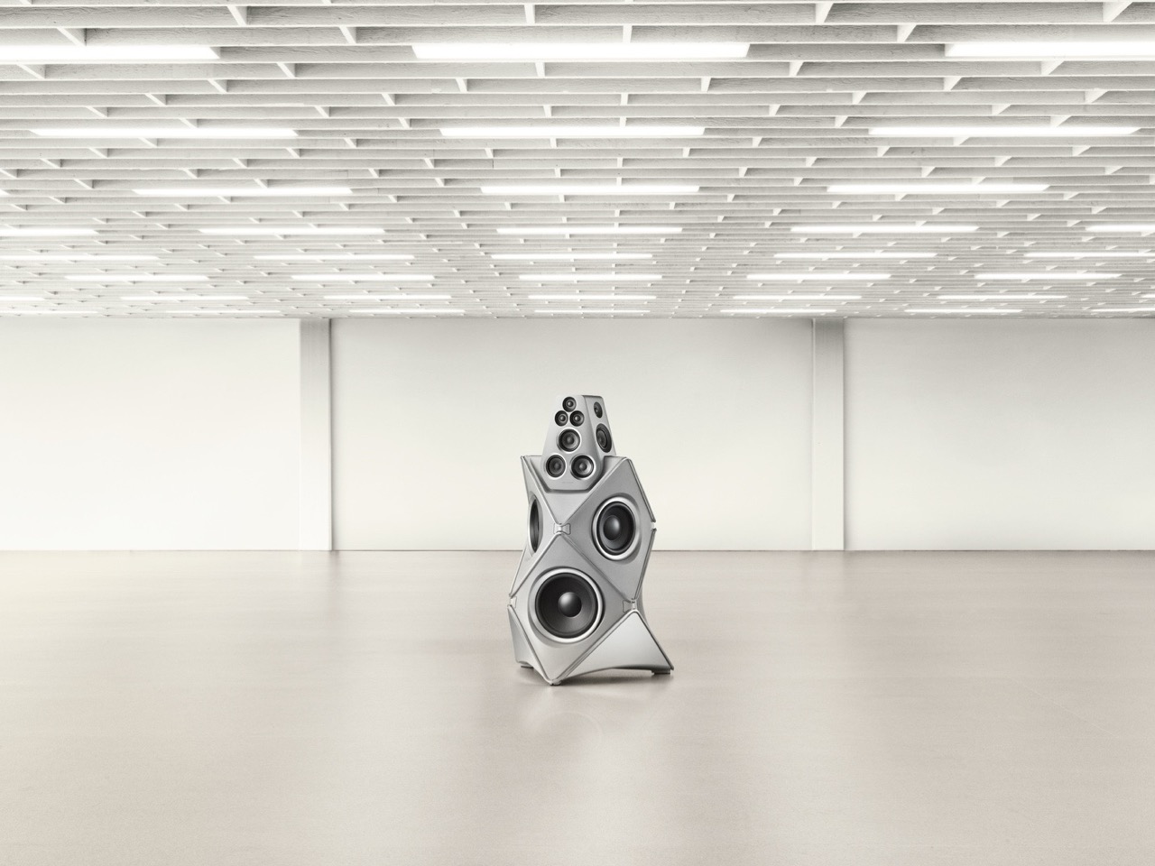 为纪念品牌创立100周年,Bang&Olufsen通过ATELIER高定工坊带来全新百年限定版Beolab 90 Titan。整机以重达65公斤的定制铝制箱体为核心,采用碾碎火山岩颗粒进行手工喷砂处理,呈现出近乎原石般的粗粝质感,同时通过抛光底座制造出“悬浮”视觉效果,在工业感与雕塑感之间取得微妙平衡。顶部整块实心铝经12小时精密铣削成型,扬声器单元周围的声波纹路、紧固件的透光微孔与激光雕刻纪念标识,共同强化其“可观赏的声学装置”属性。