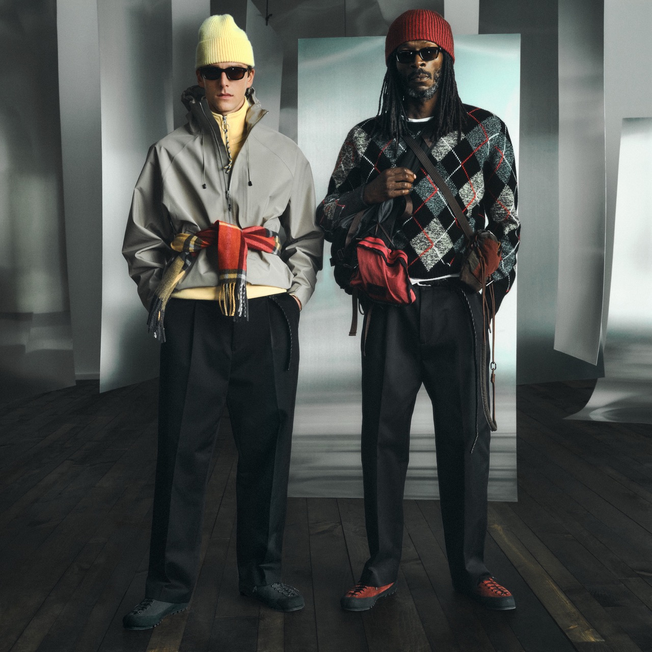 ZARA携手男装设计师Aaron Levine推出的首个联名系列,将重心放在“好穿、耐看、可自由组合”的真实日常衣橱之上。系列从户外机能、商务通勤到学院风与美式休闲多条线索并行展开,以宽松剪裁与经典廓形为基础,将西装、大衣、功能外套、法兰绒衬衫、橄榄球条纹衫等单品重新整合为一套可随意混搭的完整体系。外套以巴尔玛肯大衣、双排扣外套和登山风格夹克为核心,羊毛、羊绒混纺与耐磨机能面料并用,兼顾垂坠感与实用性;西装与套装强调自然肩线与松弛比例,弱化正式感,强化日常穿着的舒适度。鞋履从配备Vibram鞋底的登山靴延伸到极简皮革系带鞋,包袋则通过多口袋尼龙与防撕裂材质强化功能属性,将户外语言融入城市造型。