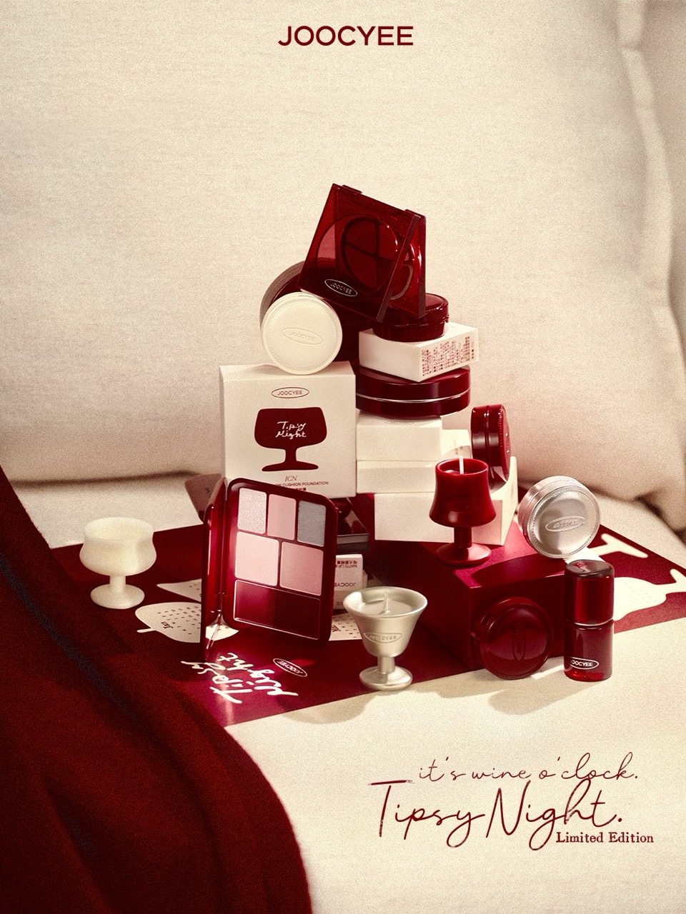 酵色JOOCYEE在年末节点推出的“正好微醺”节日限定系列,以“清醒与醉意之间的微醺时刻”为灵感,围绕唇、颊、眼、底妆构建出一套完整的氛围妆容体系。系列包含微醺唇颊冻与唇颊膏、水光润唇霜、灵感妆容盘、多用霜、四色眼影以及全新酒红气垫,从水光、绒雾到珍珠光泽三种质感并行推进,覆盖肉桂、红棕、玫瑰三大微醺色段。唇颊冻与膏主打高透水光与轻哑光晕染两种路线,强调贴肤感与氛围延展;气垫则以细腻珍珠光为卖点,兼顾通透妆效与肤质修饰。配套还推出可自由组合的小礼盒、三件套及ALL IN礼盒,将节日妆容、实用单品与仪式感一并打包。