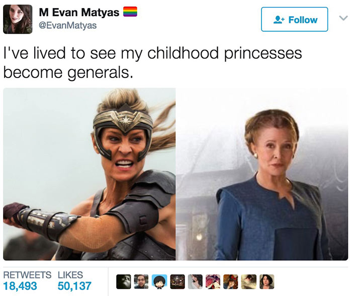 一位网友写到:“我终于活着看到了童年的公主们纷纷变成了将军。”