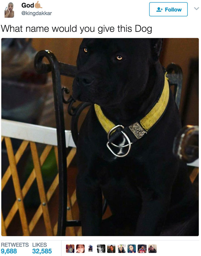 许多新主人都会在社交网络上为爱宠征集名字,一位网友就为一只黑色猎犬征集起了名字。