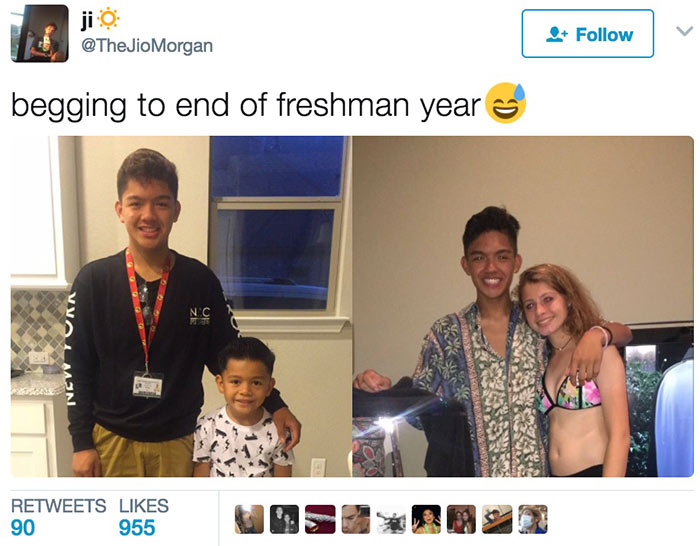 毕业季降临,大家纷纷在社交网络上晒出自己入学前和毕业后的对比照,一位网友就晒出了自己大学第一年开始前和结束后的对比,感觉似乎瘦了很多?