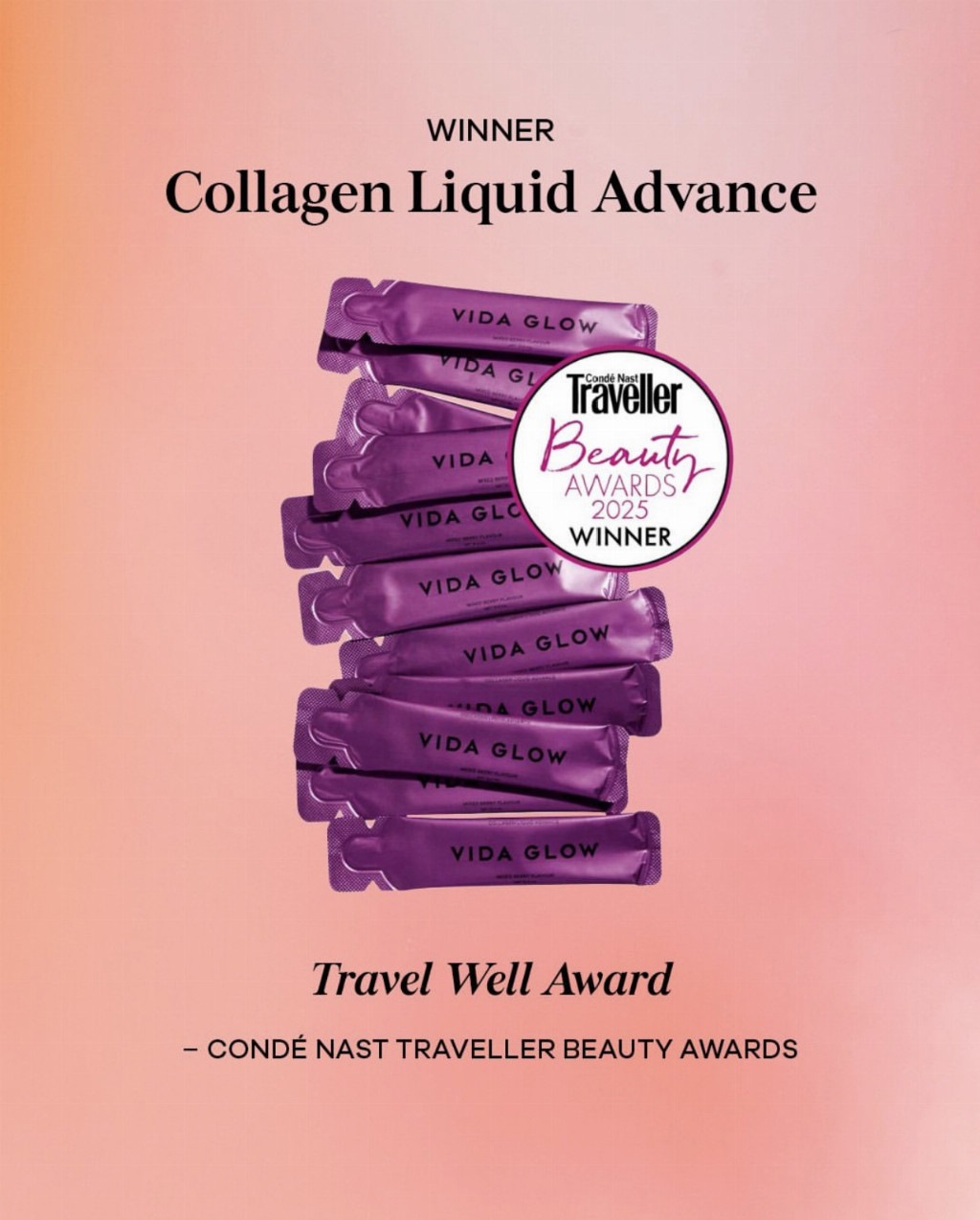 Vida Glow胶原蛋白肽饮被《Condé Nast Traveller》授予“畅旅佳伴奖