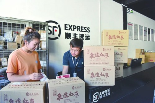 快递公司正在邮寄临县有机产品皋狼红枣。